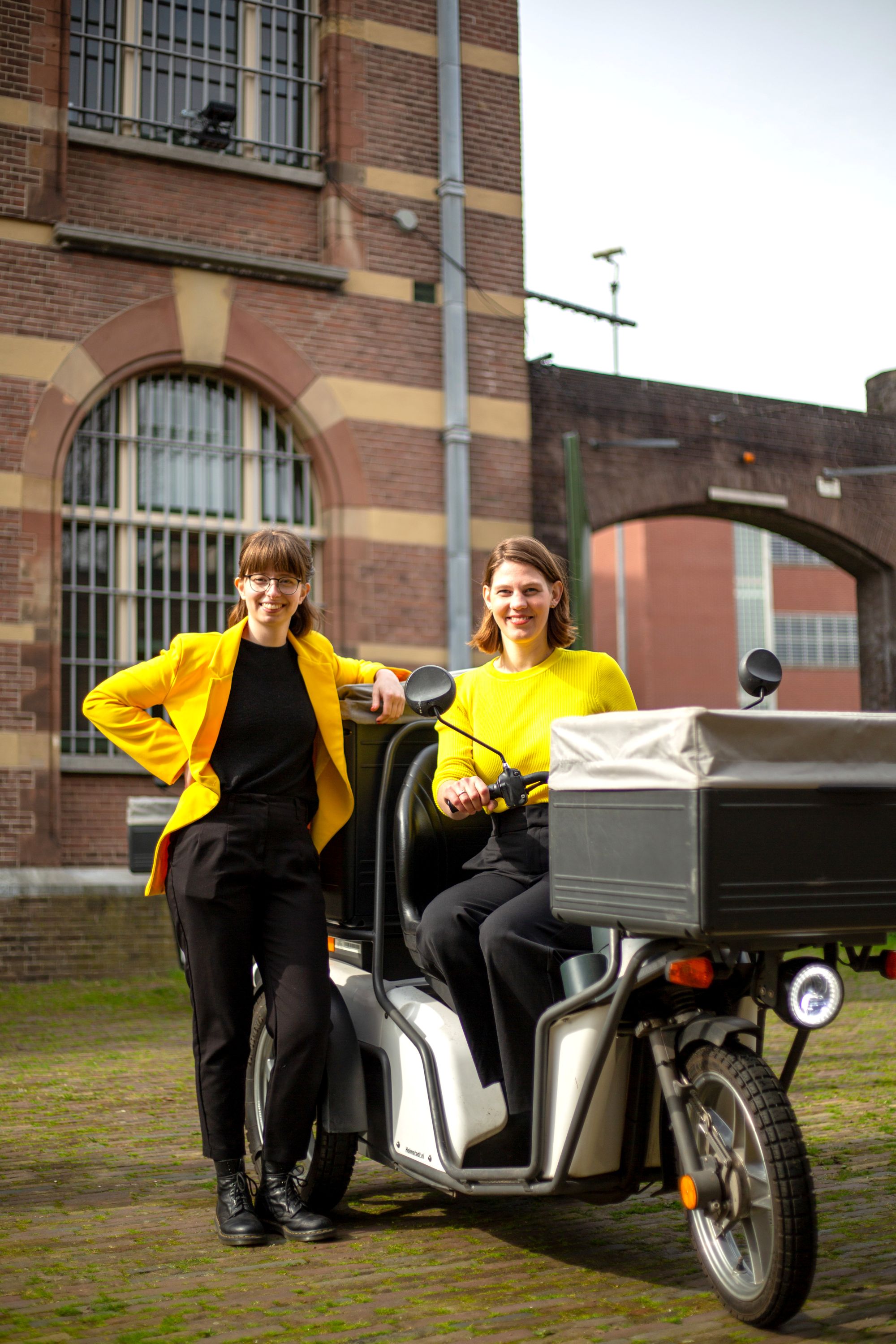 Maar het grappige idee vormde wel een basis waarop ze verder gingen denken. Maaltijden veranderden in post en pakketten. Bezorgers werden niet alleen ouderen, maar mensen met een afstand tot de arbeidsmarkt, zoals dat dan heet. “We hebben een kapotte scootmobiel gekocht op Marktplaats, hem geel gespoten en foto’s gemaakt. Voor de eerste video heb ik met een bezem een latere bezorger vooruitgeduwd in die scootmobiel, zonder dat de bezem in beeld kwam.”